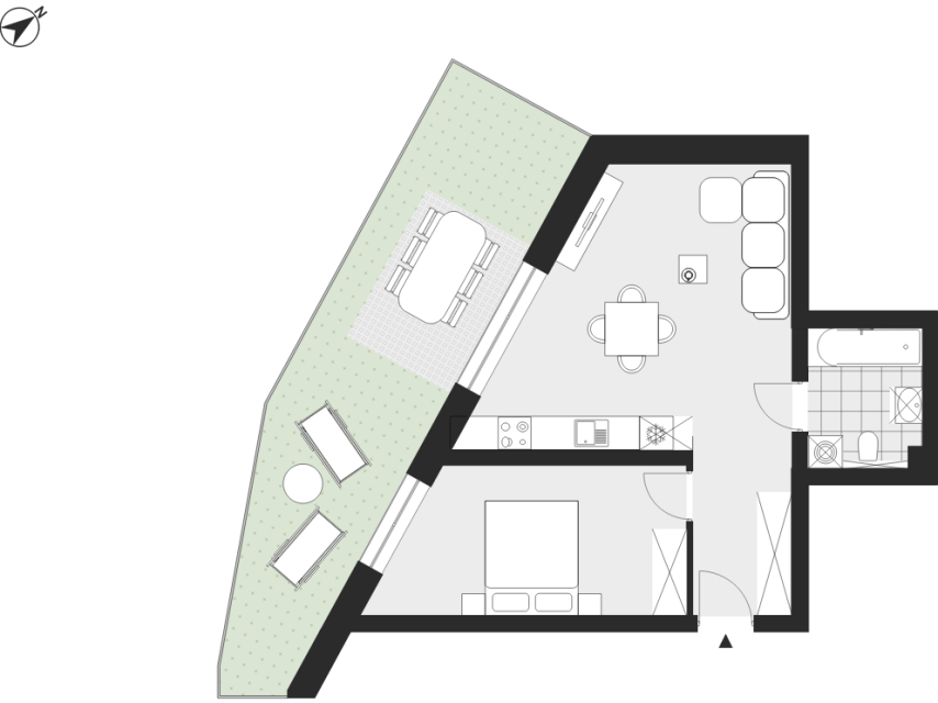 - Charakterystyka mieszkania: 47,32 m², 2 pokoje, 1 łazienka; stan: deweloperski