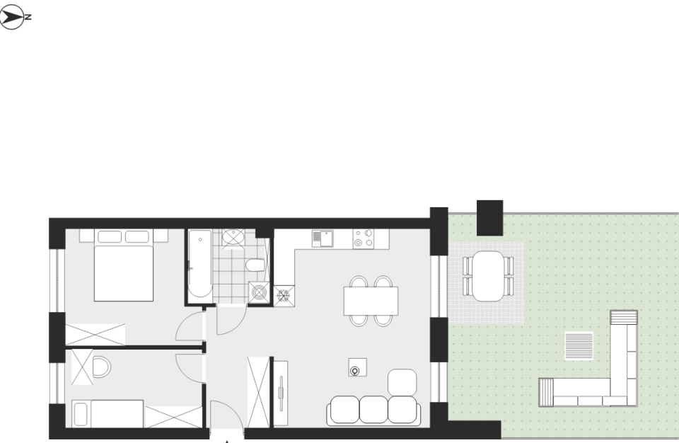 - Charakterystyka mieszkania: 55,71 m², 3 pokoje, 1 łazienka; stan: deweloperski